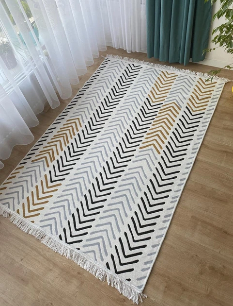Бавовняний двосторонній килим Shana 20 Arty 120x180 см гірчічний та сірий