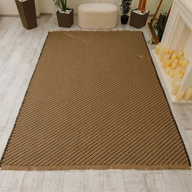 Килим безворсовий на повстяній основі Dakaria Print Run Ессен-p13 1.20x6.00 м коричневий бежевий