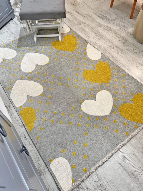 Килим дитячийMoretti Side, 77*200 см, двосторонній жовтий та сірий Серце
