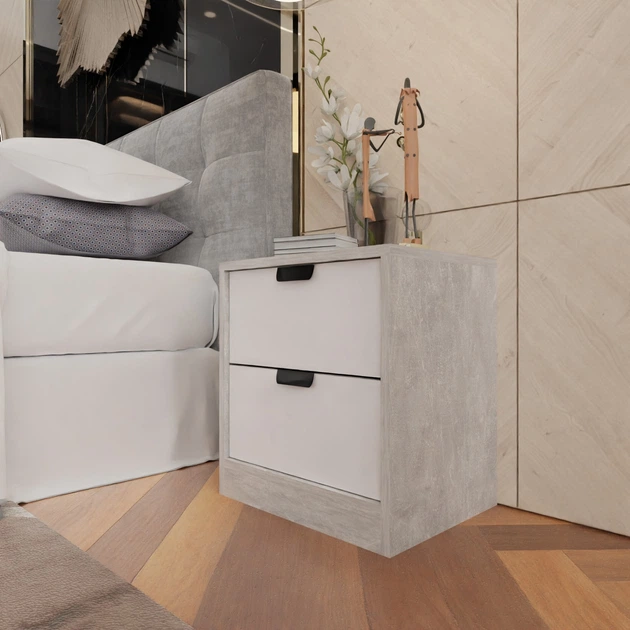 Приліжкова тумбочка з двома висувними ящиками RedWood Стокгольм Ш450*В490*Г350 Бетон\Білий RLT203betonwhite