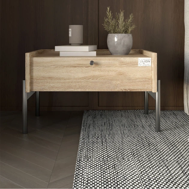 Тумба приліжкова LION Wood з однією шухлядою Дуб Сонома (чорні ножки) (LION-041321)
