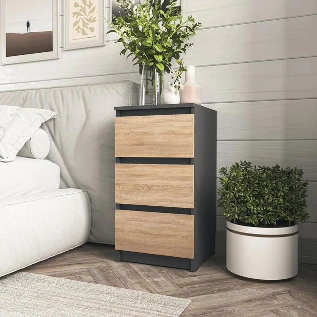 Приліжкова тумбочка на 3 шухляди без ручок, комод для дому з ДСП FT-216D