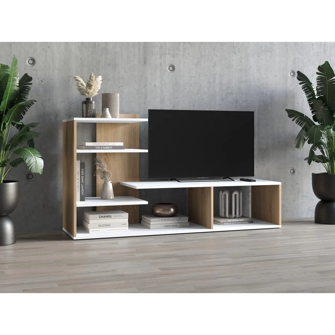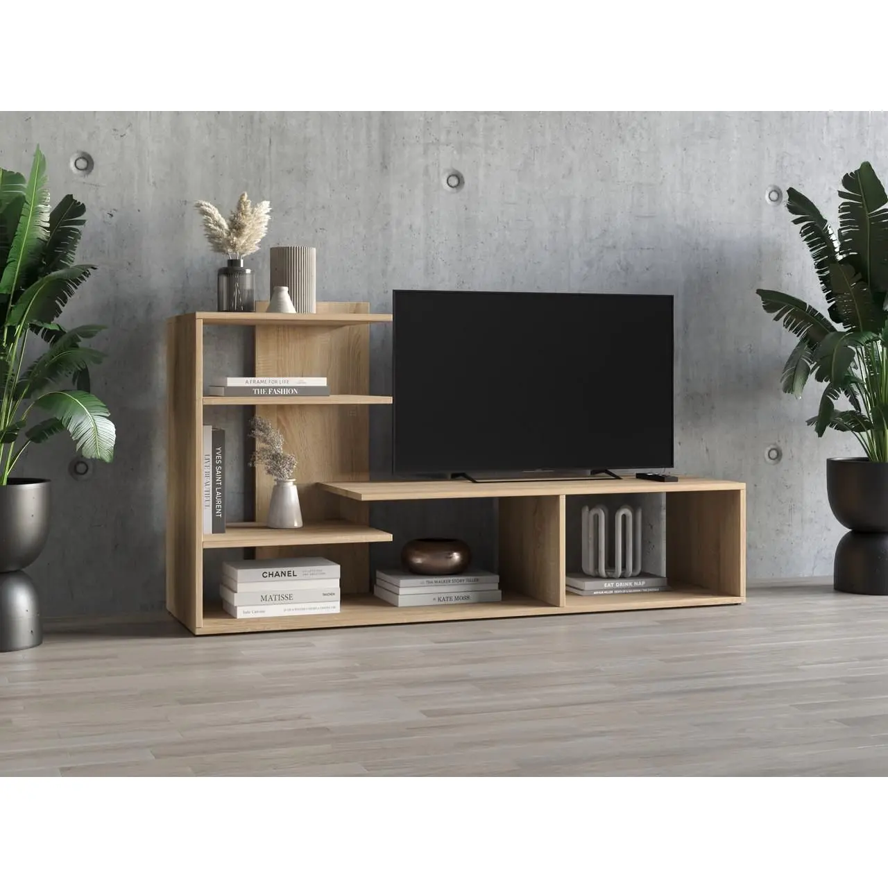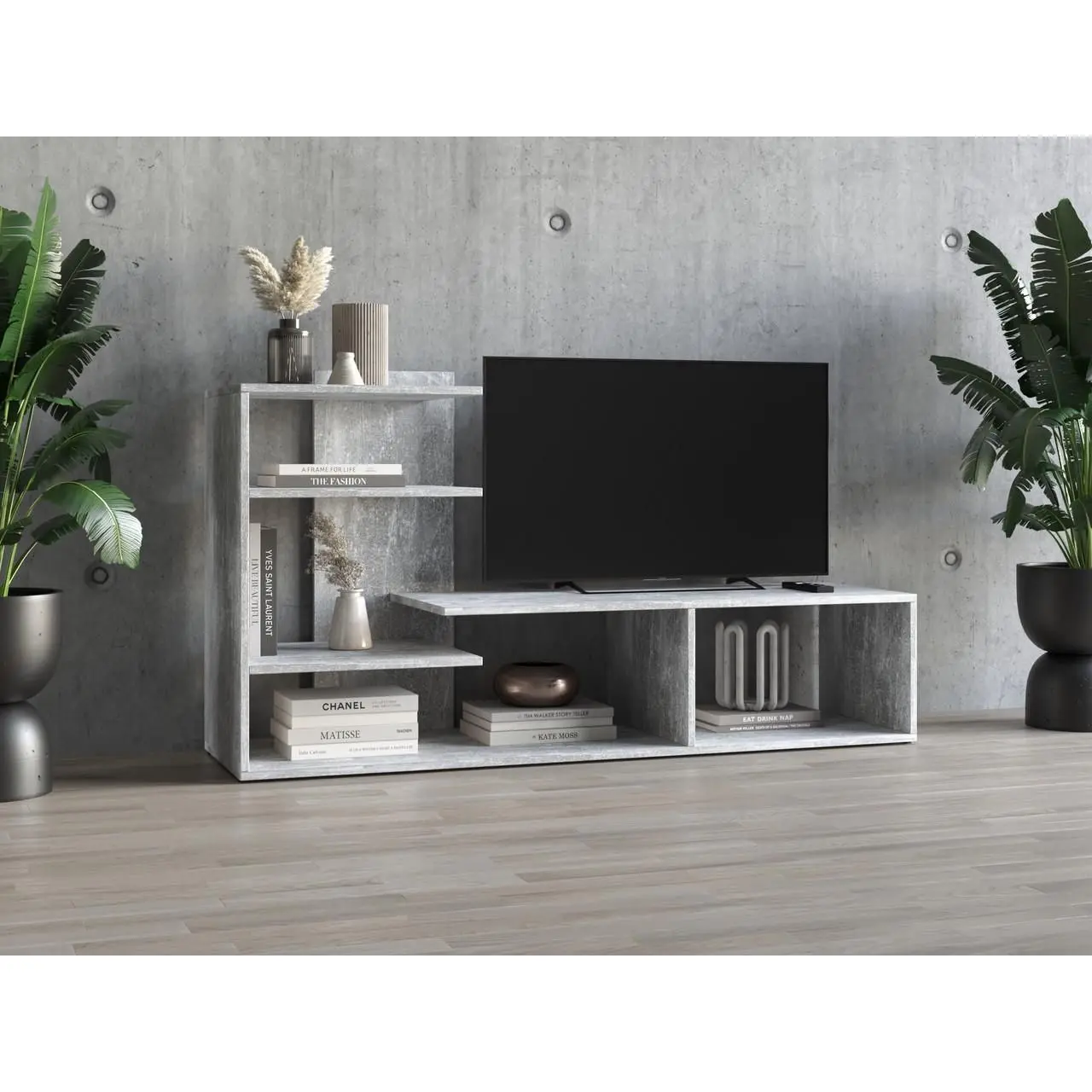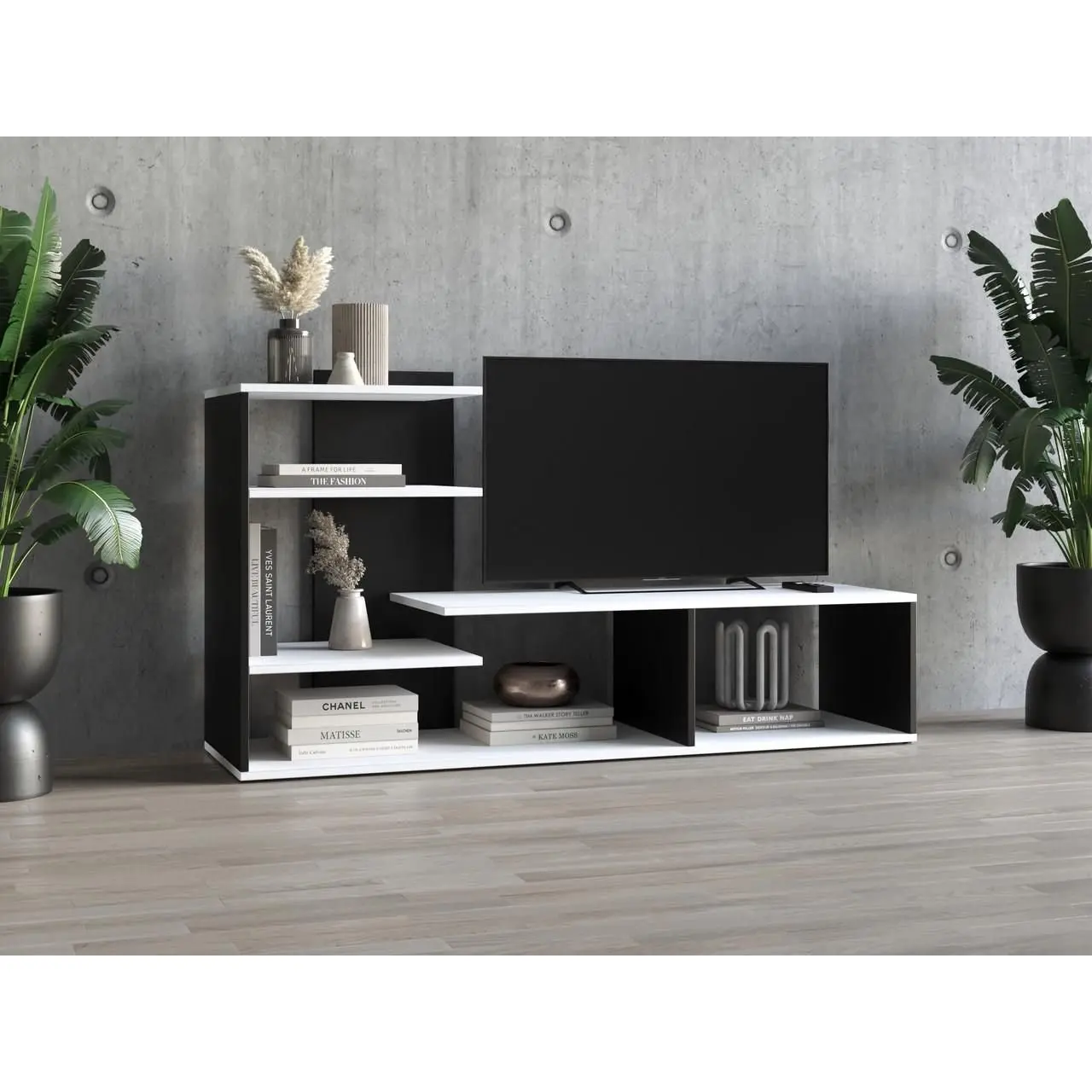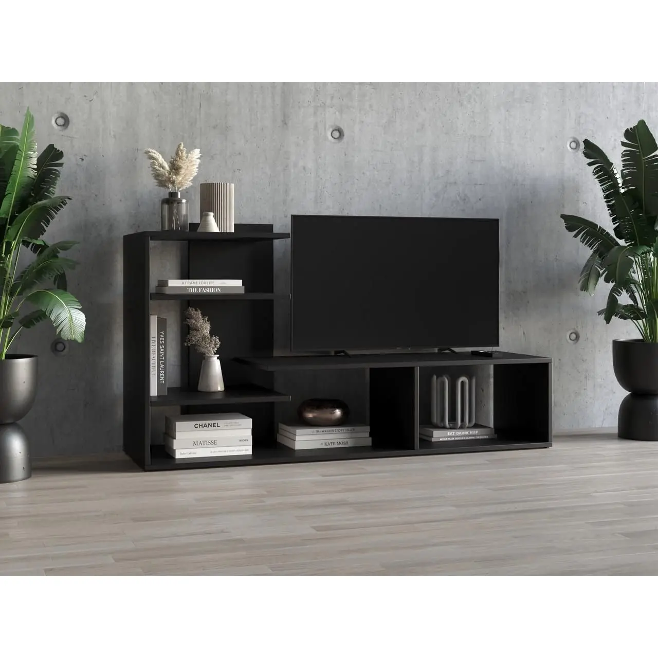 Тумба під телевізор Flamecame з 4 полицями та нішею з ДСП K-140 Антрацит/дуб