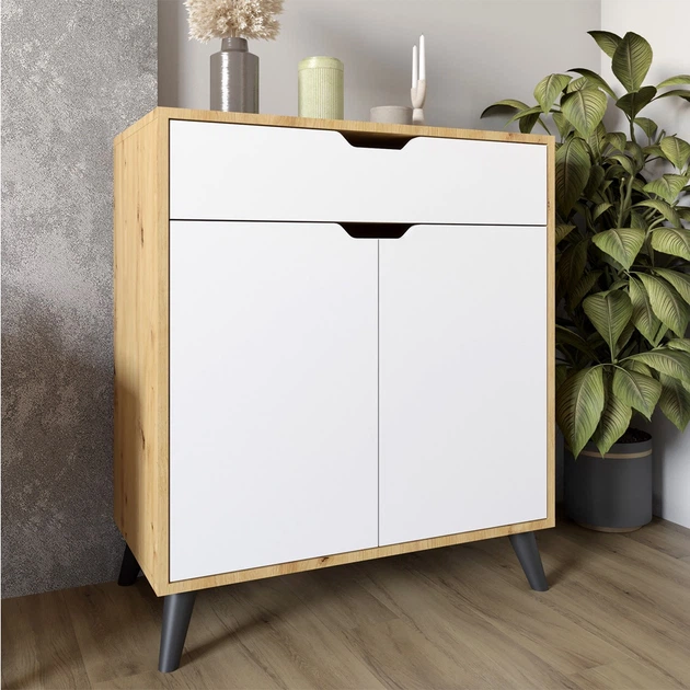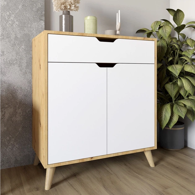 Комод у вітальню з ніжками в кольорі Горіх світлий М-ЗОН Борн 750 Дуб Артизан/Німфеа Альба (білий) (MZN-031046)