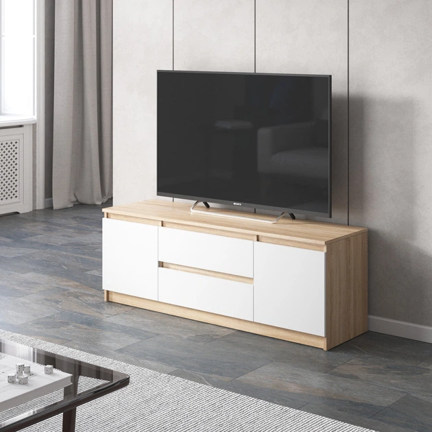 Сучасна тумба під телевізор VAYS Дуб сонома + Білий 140х40х53 см
