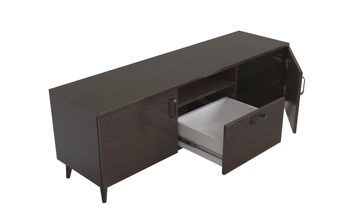 Тумба Лэстер на конусних ніжках Ferrum-decor 48x139x38 Чорний метал ДСП Венге Магія 16 мм (LEST102)