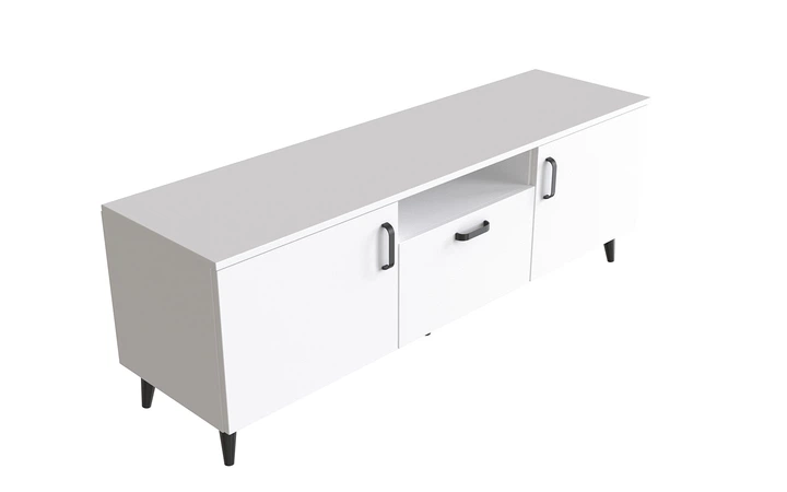 Тумба Лэстер на конусних ніжках Ferrum-decor 48x139x38 Чорний метал ДСП Білий 16 мм (LEST106)