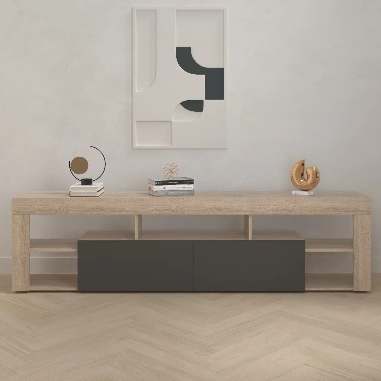 Тумба під телевізор Flamecame з 5 полицями та 2 нішами з ДСП II K-200 Дуб/антрацит
