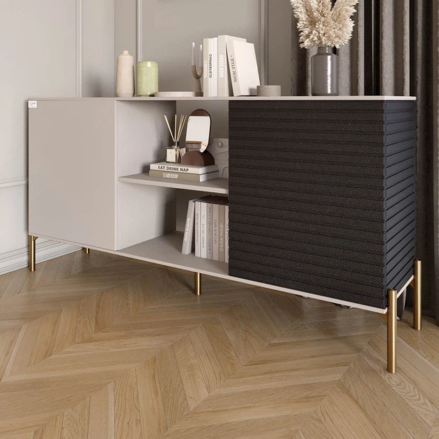 Комод відкритий на золотих металевих ніжках LION Грей Кашемір/Асфальт (LION-042750)