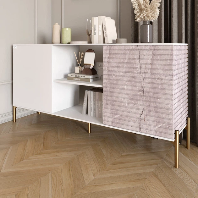 Комод відкритий на золотих металевих ніжках LION Грей Німфея Альба (білий)/Камінь (LION-042813)