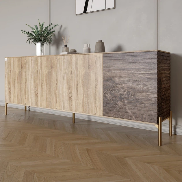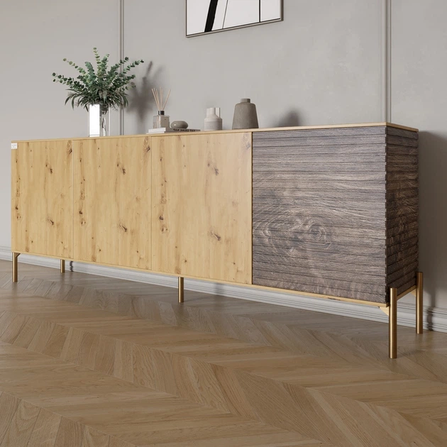 Комод на золотих металевих ніжках LION Грей 204x38x76,5 см Дуб Артизан/Дерево (LION-042657)