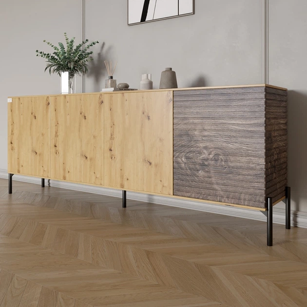 Комод у вітальню на чорних металевих ніжках LION Грей 204x38x76,5 см Дуб Артизан/Дерево (LION-042513)