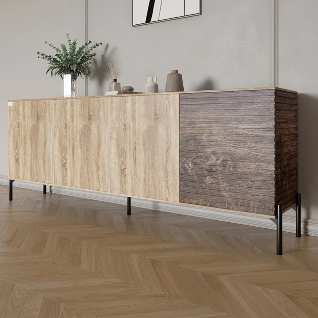 Комод у вітальню на чорних металевих ніжках LION Грей 204x38x76,5 см Дуб сонома/Дерево (LION-042507)