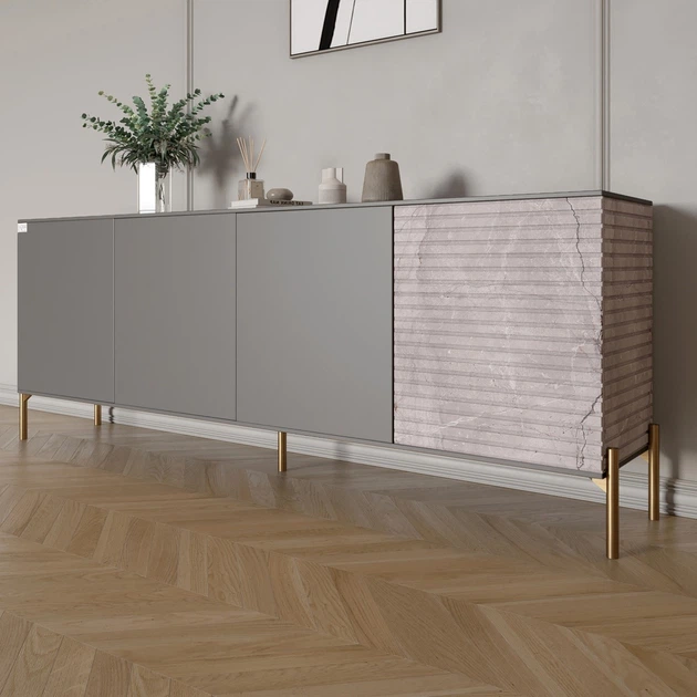Комод на золотих металевих ніжках LION Грей 204x38x76,5 см Самоа Димчастий/Камінь (LION-042691)