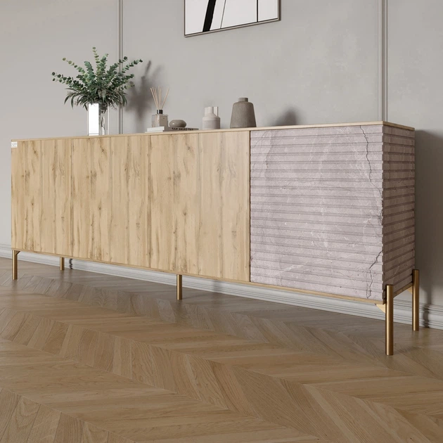 Комод на золотих металевих ніжках LION Грей 204x38x76,5 см Дуб Аппалачі/Камінь (LION-042684)