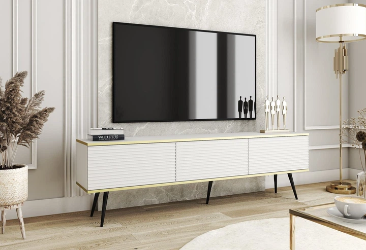 Тумба під ТБ Perfect Home Оро / Oro RTV175 MDF 3-дверна із чорними ніжками Білий