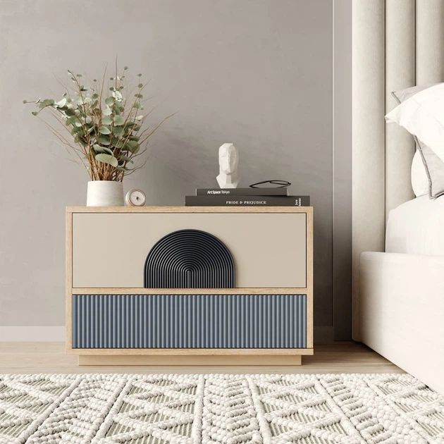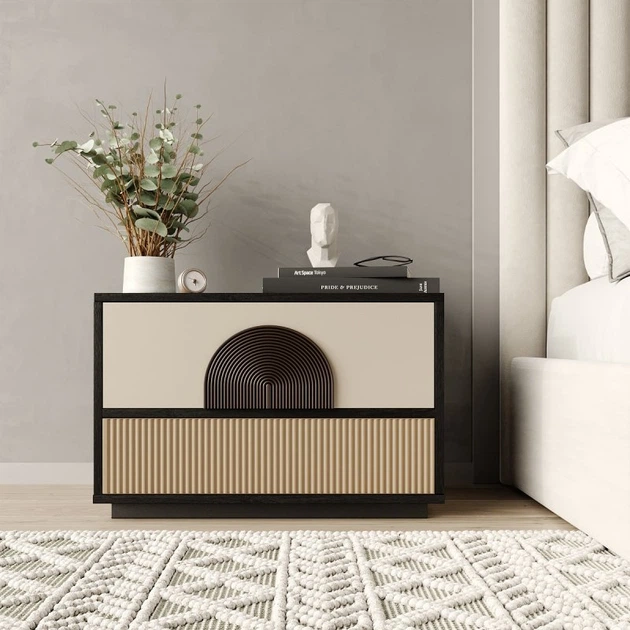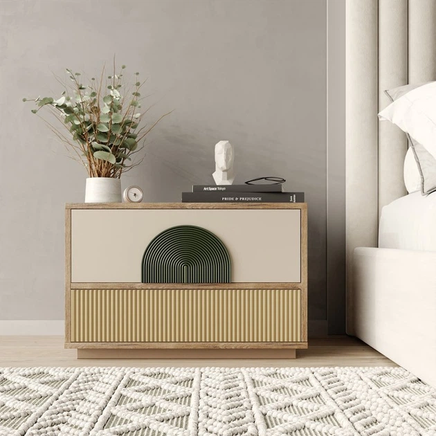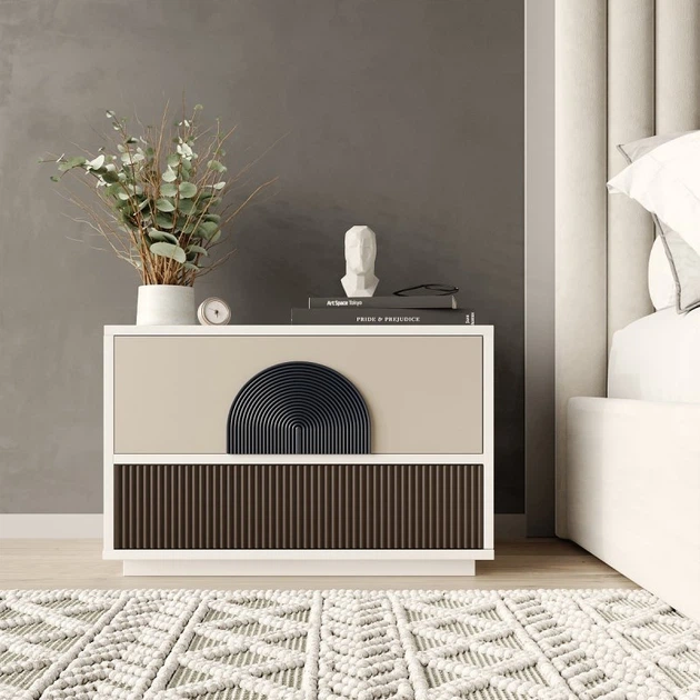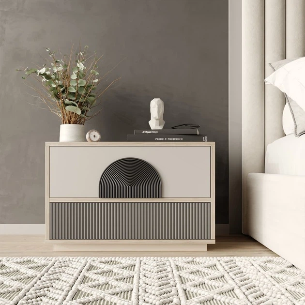Тумби приліжкові з підсвіткою Арко / Arco з 4 шухлядами 2S/60 Білий глянець/дуб грандсон Ш60xВ102 см. Perfect Home