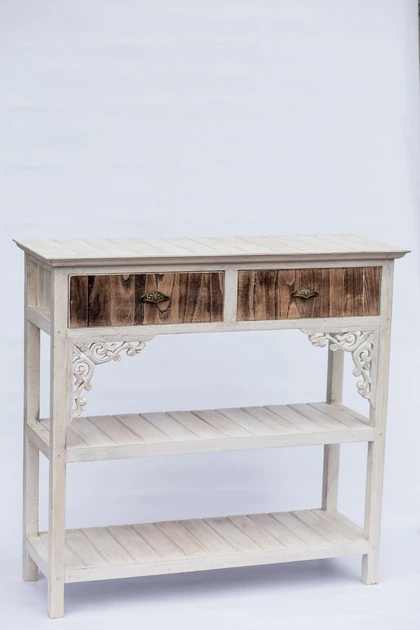 Тумба консоль з різьбленням 90х35 см Бежева з білим (25 026)
