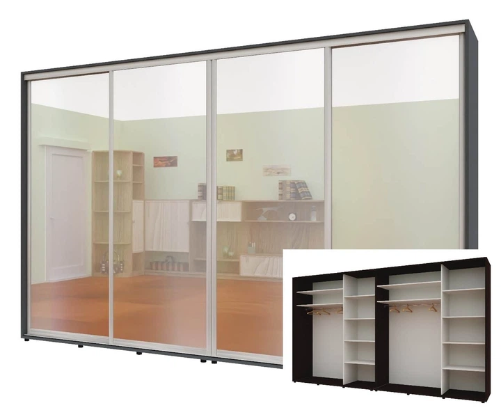 Шафа-купе чотиридверна Комфорт Меблі 360*60*210 см Венге 4 двері Дзеркало Стандарт