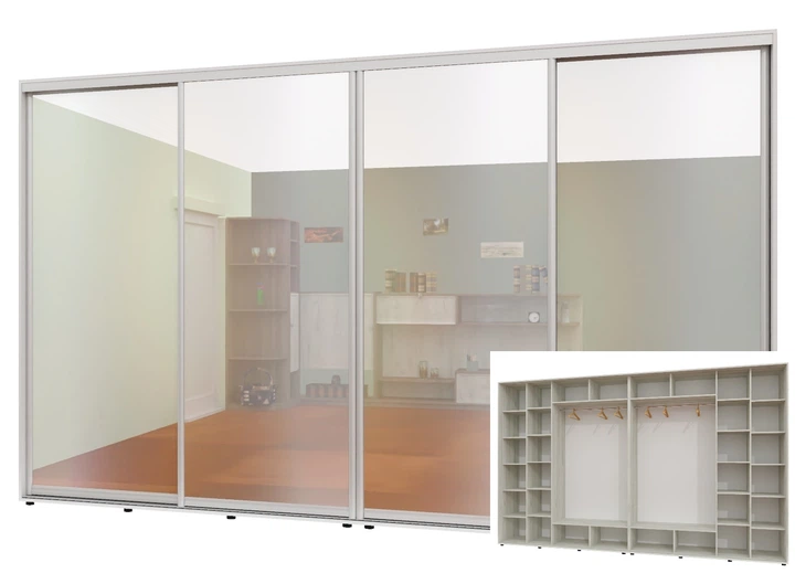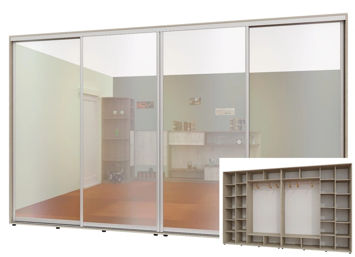 Шафа-купе чотиридверна Алекса 370*60*240 см Дуб молочний 4 двері Дзеркало ШК-02