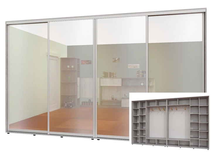 Шафа-купе чотиридверна Алекса 370*60*230 см Дуб крафт сірий 4 двері Дзеркало ШК-02