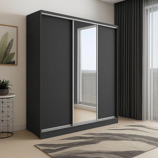 Шафа купе Mebel Star трьохдверна дзеркало 240*240*60 Антрацит