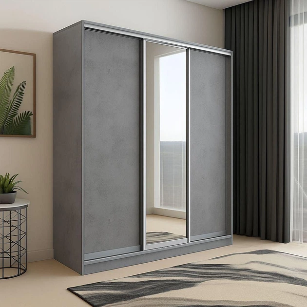 Шафа купе Mebel Star трьохдверна дзеркало 240*240*60 Бетон