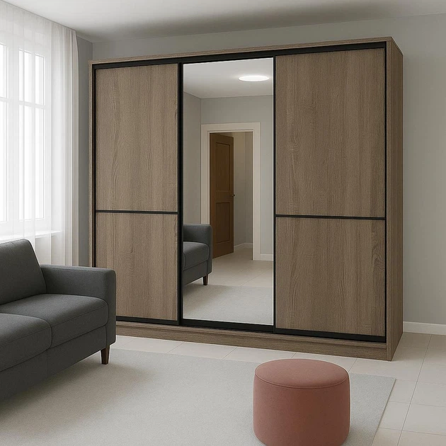 Шафа купе Mebel Star трьохдверна дзеркало + комбі 2 і темний профіль 260*240*60 Дуб сонома Трюфель