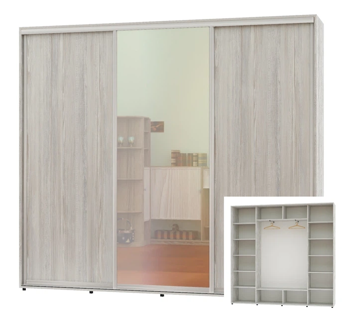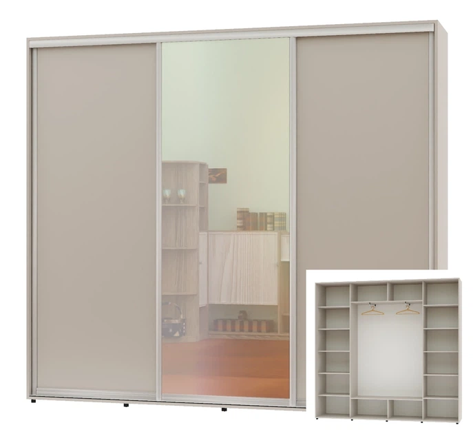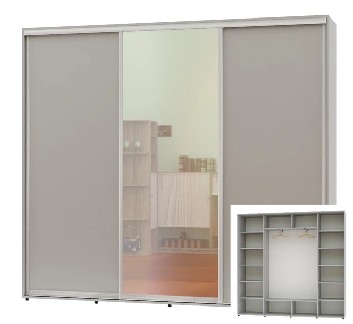 Шафа-купе тридверна Алекса 250*45*250 Кашемір ДСП/Дзеркало/ДСП ШК-05