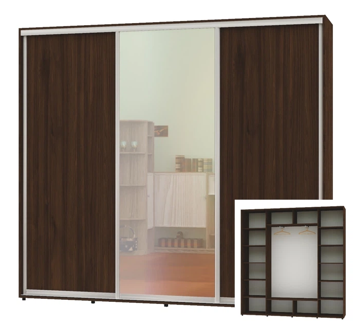 Шафа-купе тридверна Комфорт Меблі 250*60*240 см Трюфель 3 двері ДСП Стандарт