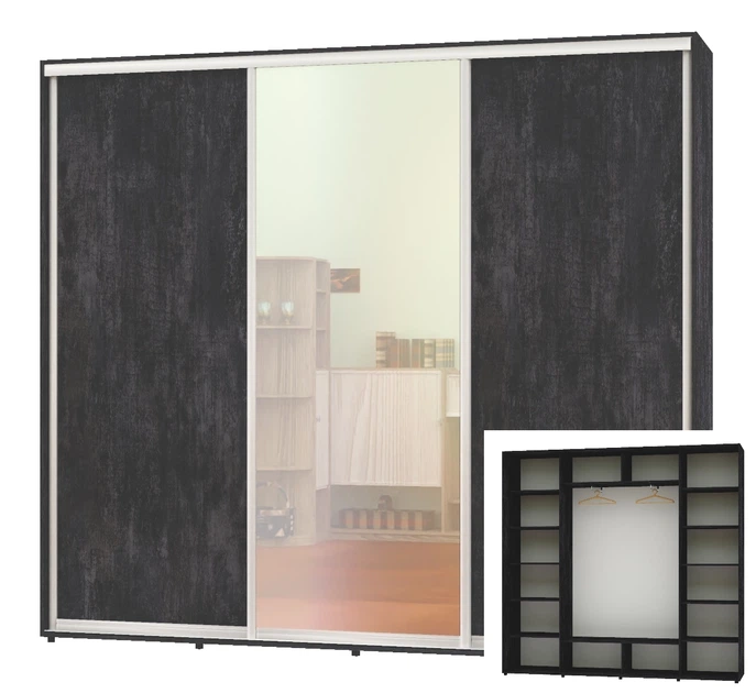 Шафа-купе тридверна Алекса 250*45*250 Бетон темний ДСП/Дзеркало/ДСП ШК-05