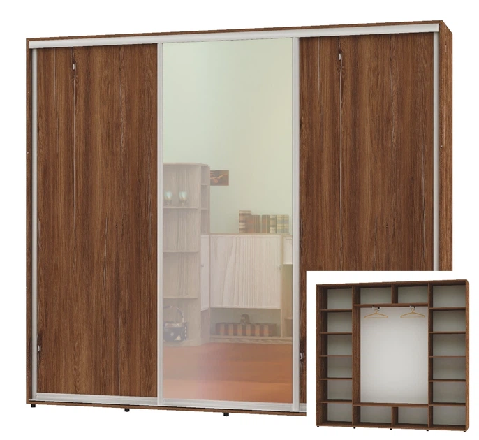 Шафа-купе тридверна Комфорт Меблі 250*60*240 см Натуральний 3 двері ДСП Стандарт