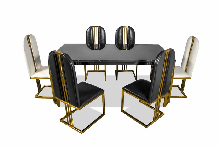 Комплект Стіл та Стільці 6шт Just Relax “Шрі-Ланка” (180х90х75см) Керамічний Чорний з Білим