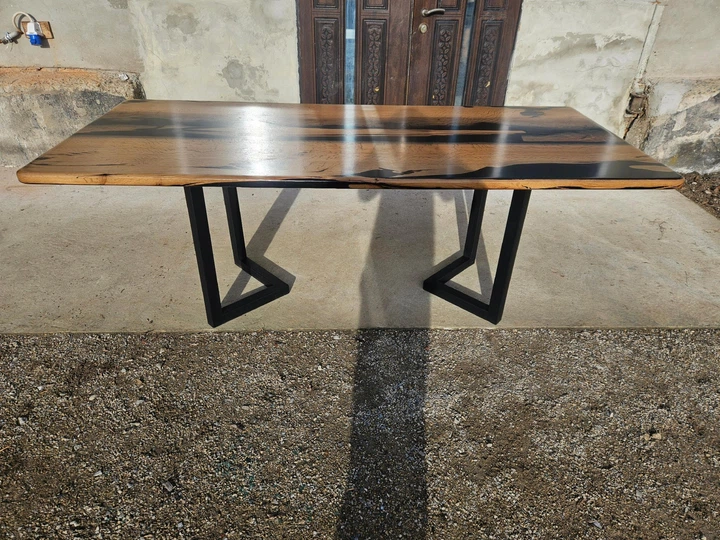 Стіл із масиву мореного дуба 2200х1000х760 мм ніжки металеві чорні (005)