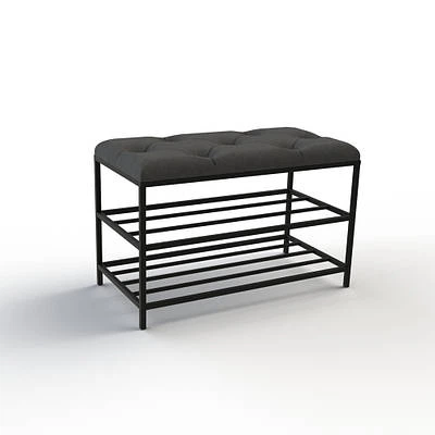 Банкетка з каретною стяжкою та чорним каркасом 70 см Сірий