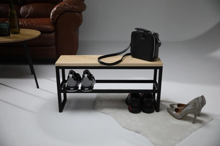 Полиця для взуття з дерева та металу, лавка, банкетка в передпокій MDA 80х20х36 см (ML-5.5)