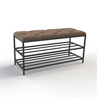 Банкетка з каретною стяжкою та чорним каркасом 90 см Коричневий