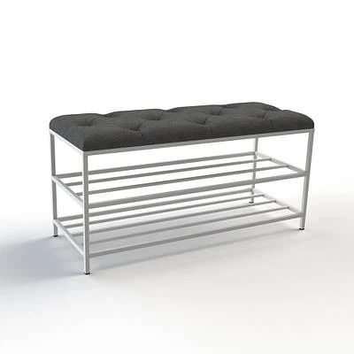 Банкетка з каретною стяжкою та білим каркасом 90 см Сірий