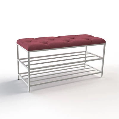 Банкетка з каретною стяжкою та білим каркасом 90 см Червоний