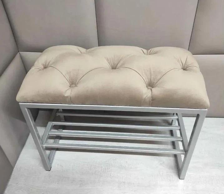 Банкетка Vi-Tall 603545 см, 1 полка, корпус сірий, каретна стяжка, велюр