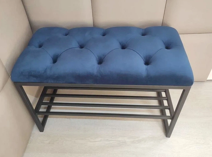 Банкетка Vi-Tall 603545 см, 1 полка, корпус чорний, каретна стяжка, велюр