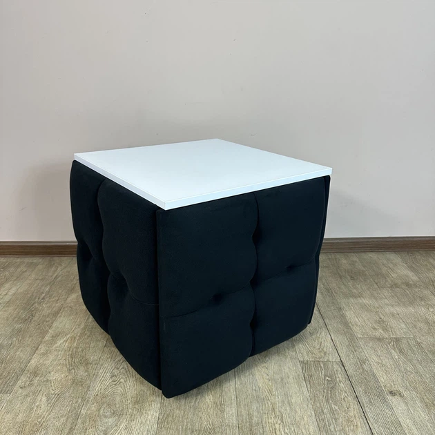 Пуф-трансформер 5 в 1 Mzavod Остін-4 зі столиком велюр чорний/біла аляска (OSTIN-4-ST-VLR10-3-9005)