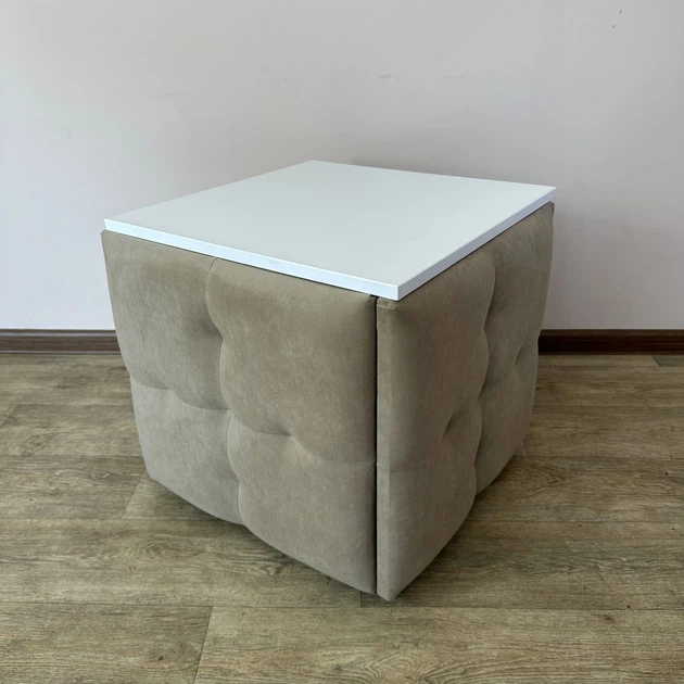Пуф-трансформер 5 в 1 Mzavod Остін-4 зі столиком велюр бежевий/біла аляска (OSTIN-4-ST-VLR3-3-9003)