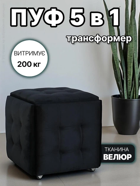 Пуф-трансформер велюр 5в1 №43 чорний 50см Х 50см Х 49см