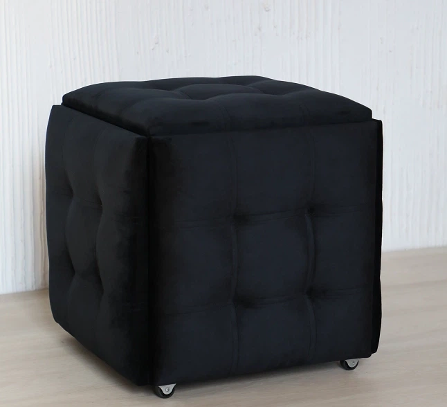 Пуф трансформер 5 в 1 чорний м’який велюровий каркасний розкладний квадратний 50 см складний лофт на колесах колесиках табур