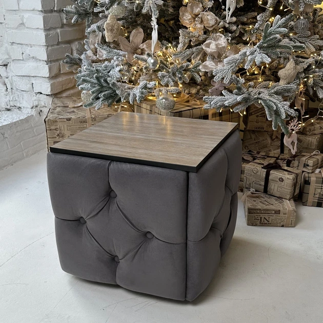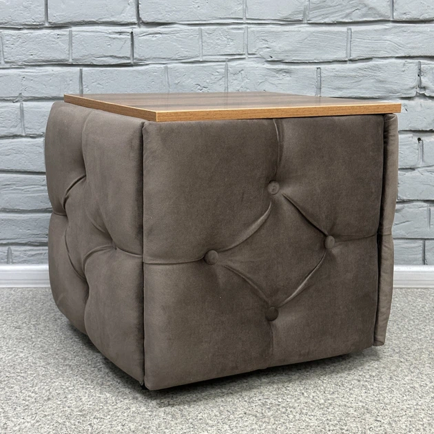 Пуф-трансформер 5 в 1 Mzavod Остін-1 зі столиком велюр сіро-коричневий/горіх каліфорнійський (OSTIN-1-ST-VLR5-4-9005)