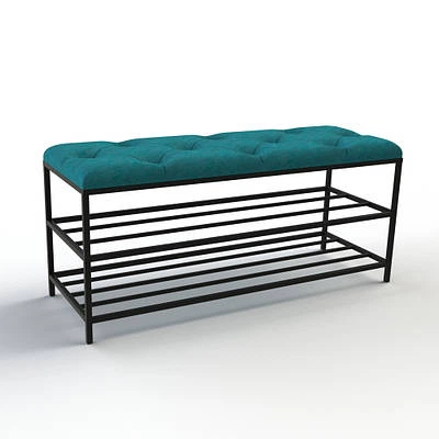 Банкетка з каретною стяжкою та чорним каркасом 100 см Бірюзовий