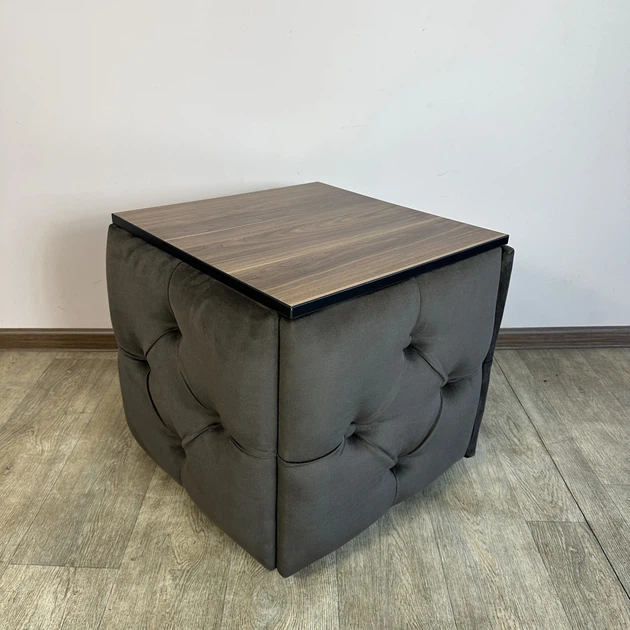 Пуф-трансформер 5в1 зі столиком Горіх каліфорнійський /Сіро-коричневий 470х470х450 мм
