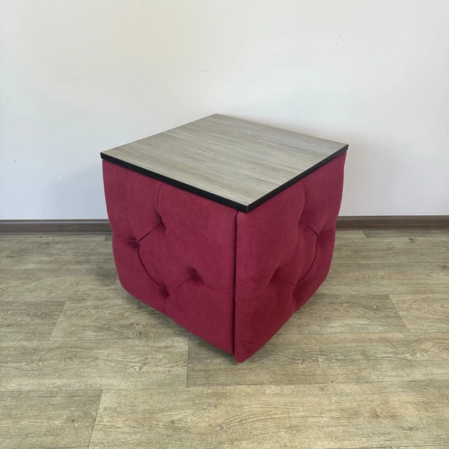 Пуф-трансформер 5в1 зі столиком Дуб платиновий/Червоний 470х470х450 мм