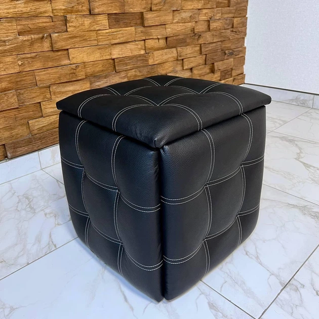 Пуф трансформер 5в1 з п'яти стільчиків з чорного шкірозамінника топ + ПОДАРУНОК Інтер'єрна подушка